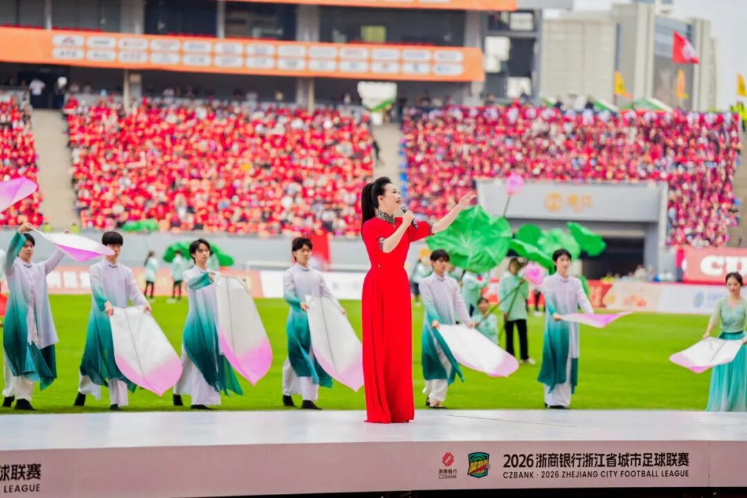 赛事的热度不止于商业赞助,更体现在开幕式的创意呈现上。开球机器人“冲冲”与中超新星王钰栋共同开球;开场表演“NPC大秀《吴越太平年》”通过马术擎旗、蹴鞠踏歌再现吴越国盛世祥和景象;红船元素映照初心,歌手吕薇深情献唱《红船向未来》;金庸笔下“江南七怪”等15个经典武侠人物实景展演,赛事吉祥物“粽冲冲”、城市IP“菱宝”“粽宝”巡游互动,趣味十足。整场开幕式融合科技、武侠、非遗与现代体育,极大地提升了赛事的传播力与话题性。