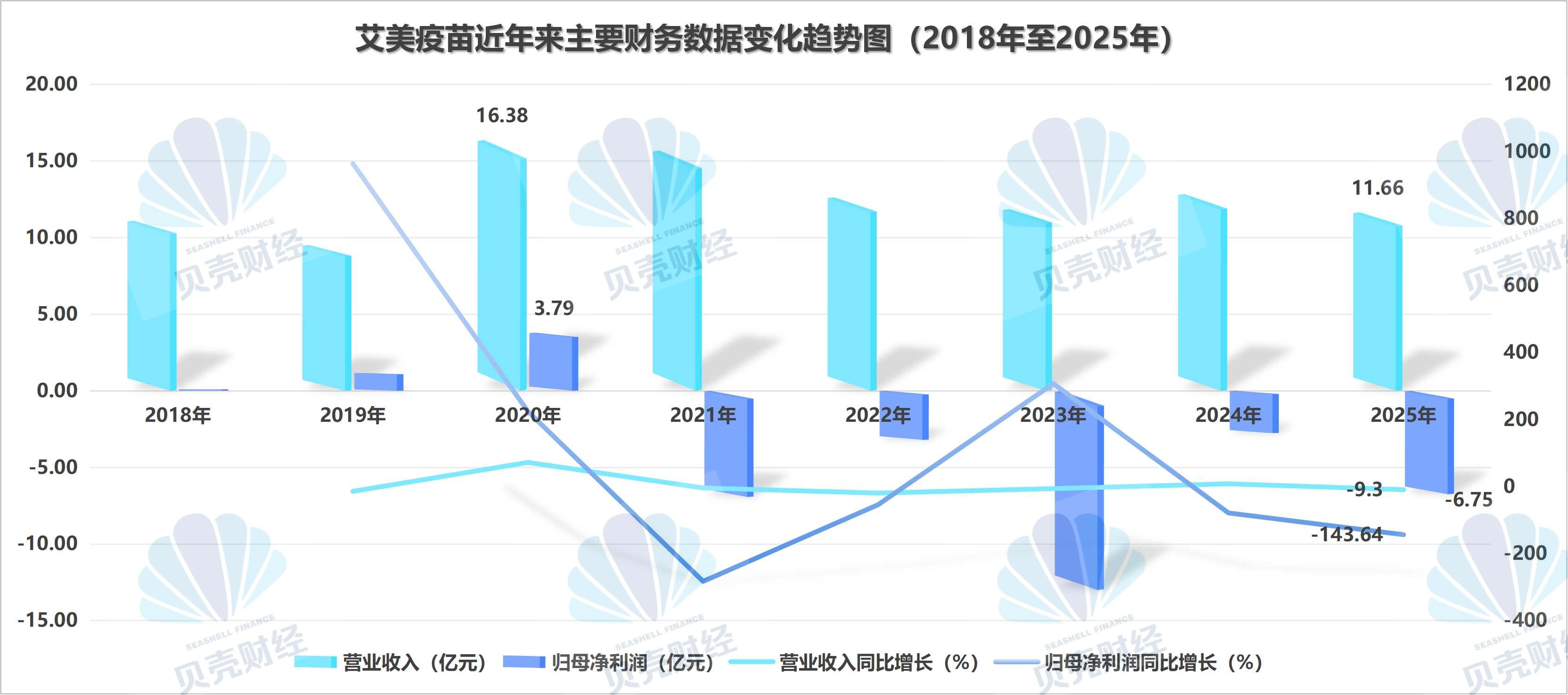 在披露公司拟回A股、登陆北交所之前,艾美疫苗2026年3月31日发布了2025年全年业绩公告。截至2025年末,艾美疫苗实现营业收入约为11.66亿元,同比下降9.3%;母公司拥有人应占亏损(即归母净亏损)约为6.75亿元,同比减少143.64%。