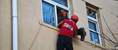 老人被困5层高楼外狭窄平台,消防员紧急破窗救人