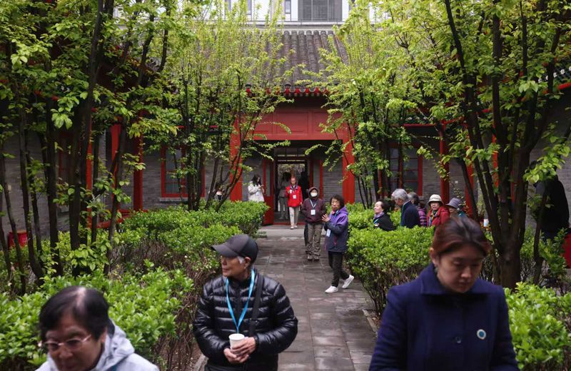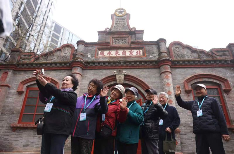4月9日,北京市自来水集团举办首届“水润万家 同心同行”开放月活动,开放月采用“参观+科普+互动+交流”的模式,让市民近距离感受首都供水的科技力量与服务温度,将节水护水的理念融入日常,推动形成“人人关心水、人人守护水”的社会共建格局。图为市民在清末自来水厂办公旧址前拍照。
