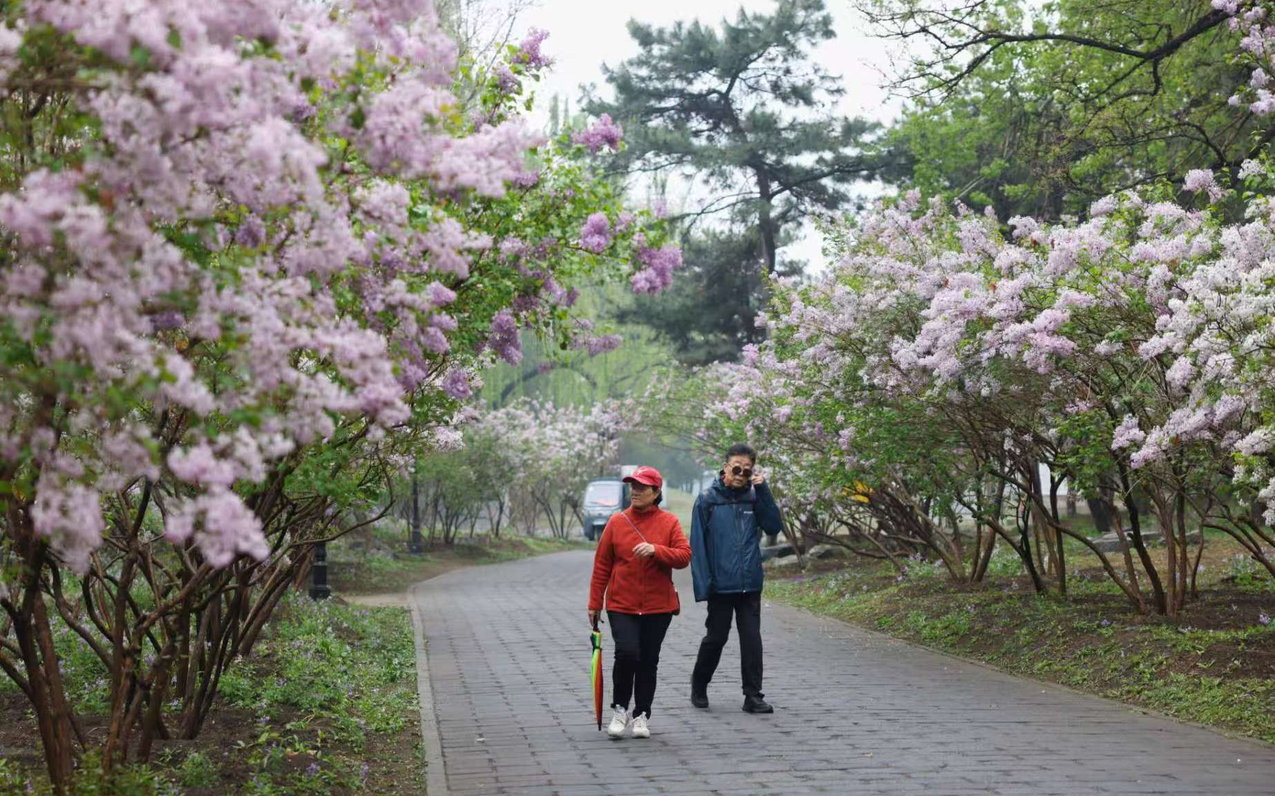 4月9日,圆明园,福海西侧的丁香花进入最佳观赏期。新京报记者 浦峰 摄