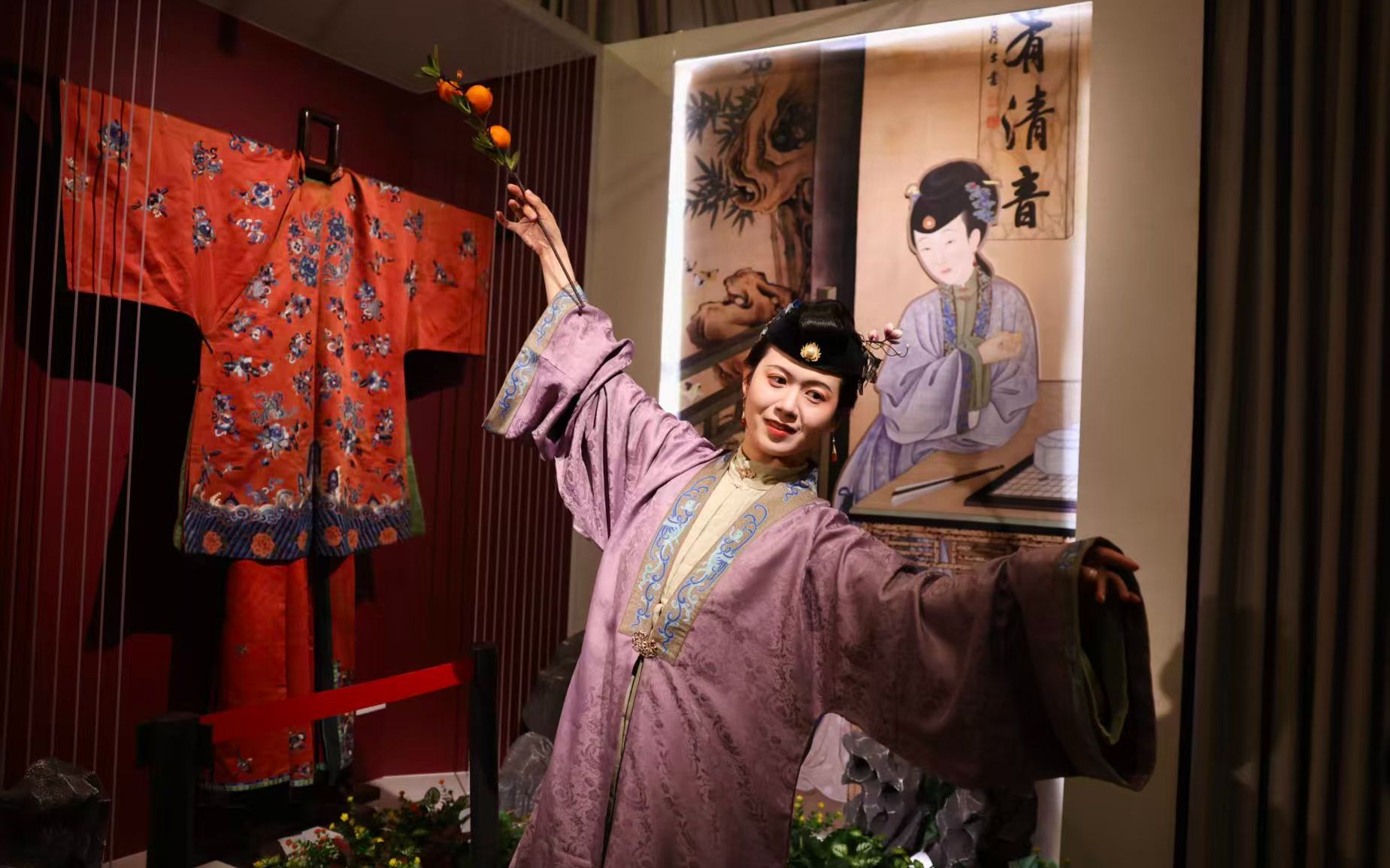 “屏影惊鸿——雍正十二美人图岁时雅韵展”也在圆明园博物馆最上楼二层正式开展。《胤禛十二美人图》原陈设于圆明园深柳读书堂围屏,画中女子品茶、观书、赏蝶、对镜,衣饰纹样精巧绝伦,暗八仙、缠枝莲、福寿纹等尽显皇家工艺之美。本次展览1:1非遗复原美人服饰与配饰,历时半年考据复刻,还原画中衣纹、发饰、首饰细节,点翠步摇、福寿发簪、莲花耳饰等十余件复刻首饰同步展出,让观众近距离感受清代宫廷美学的极致匠心。