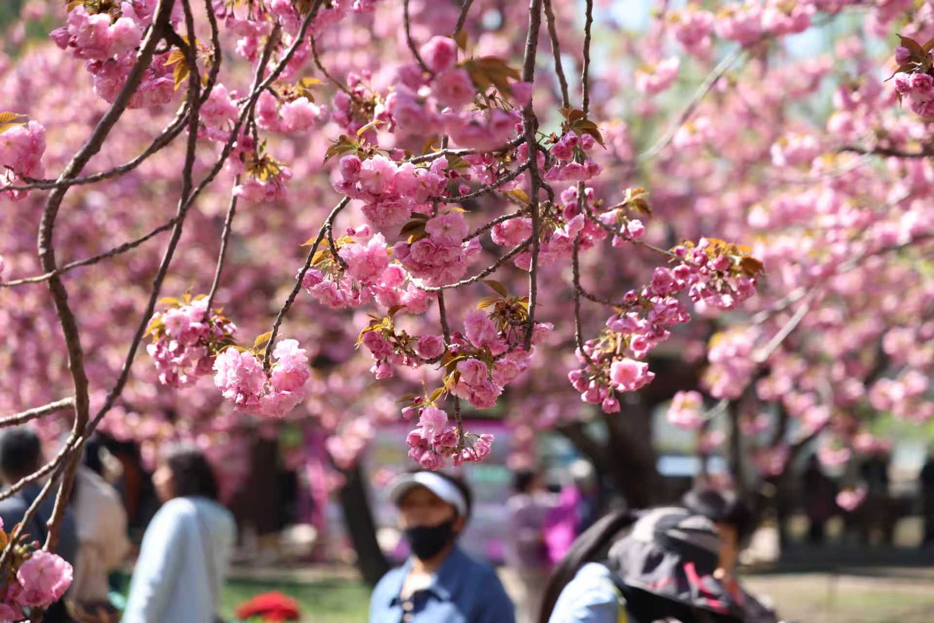 “游客可以根据自己喜欢的花型决定什么时候来园赏花。”胡娜说,和早樱单瓣、花朵小巧不同,晚樱为重瓣花朵,层层叠叠,近观如锦簇团花,远望似绯红云霞。