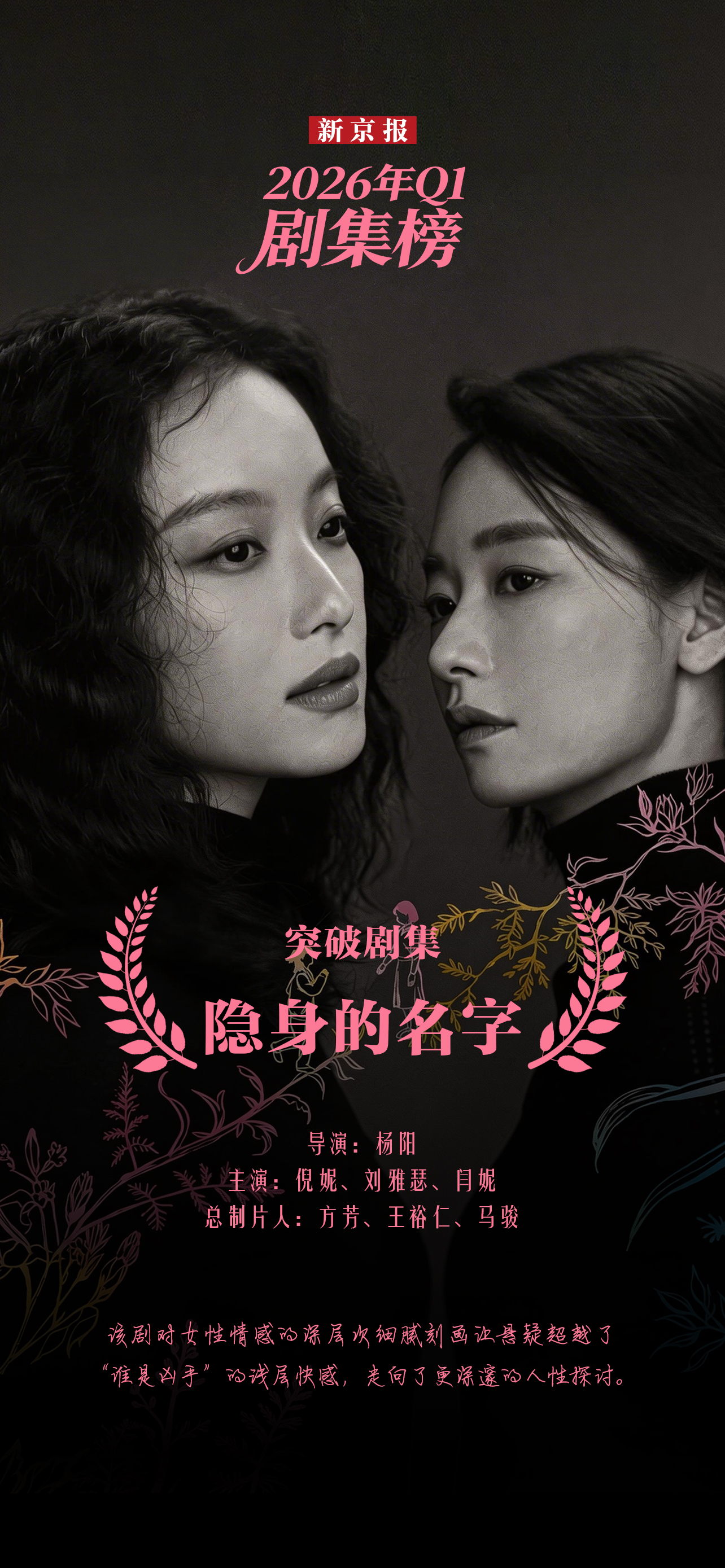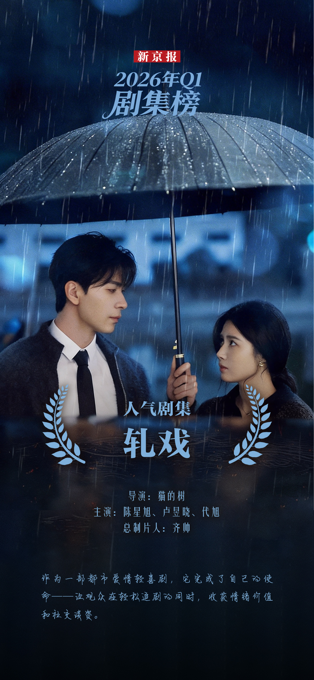 新京报梳理了2025年12月23日—2026年3月22日期间开播的热门剧集。根据剧集品质、观众口碑、播出热度等多个维度推选出“新京报2026年Q1剧集榜”,包括了“影响力剧集”“品质剧集”“新锐剧集”“突破剧集”“人气剧集”。
