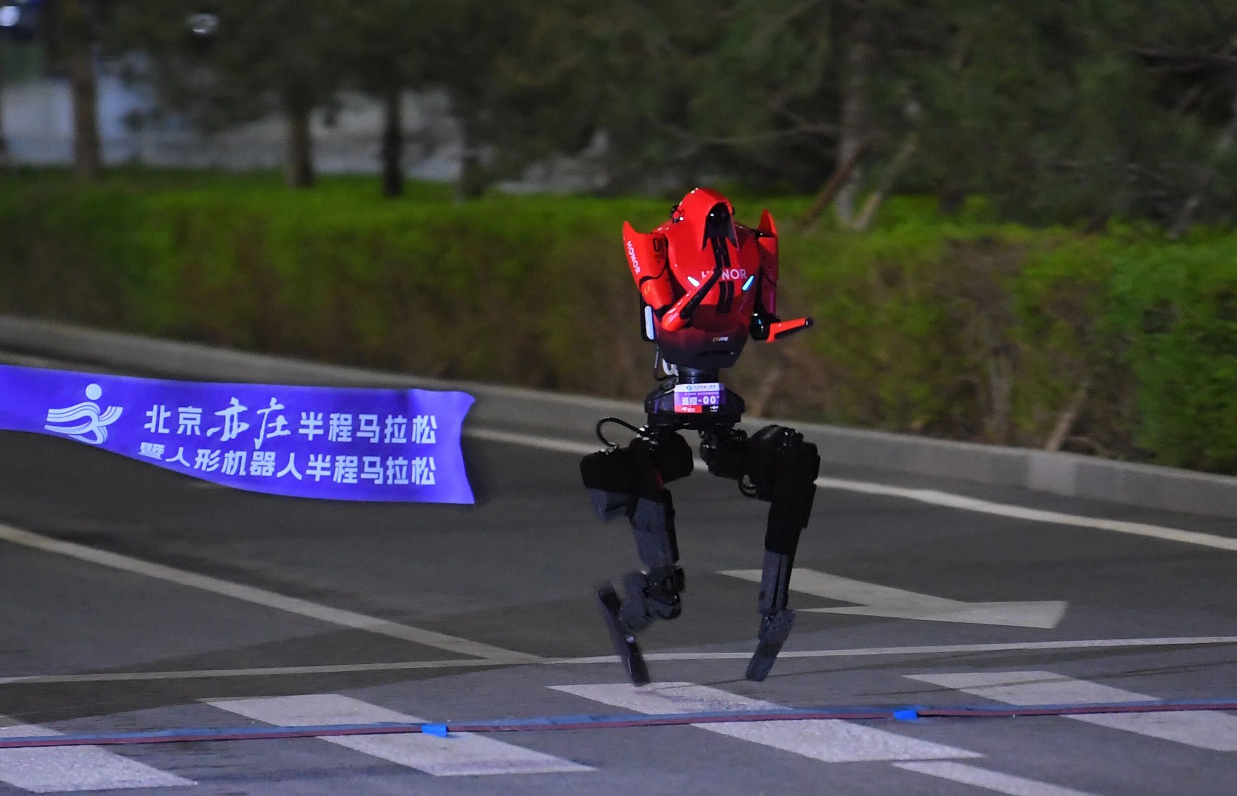 昨夜今晨,机器人和人类分别在北京跑了一场半程马拉松