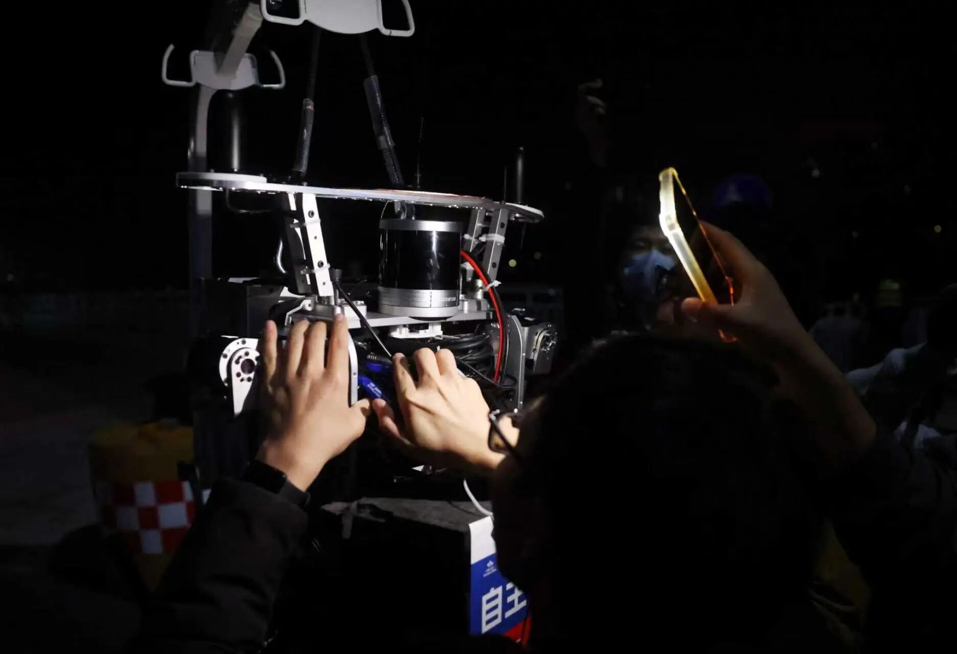 技术人员调试参赛机器人。