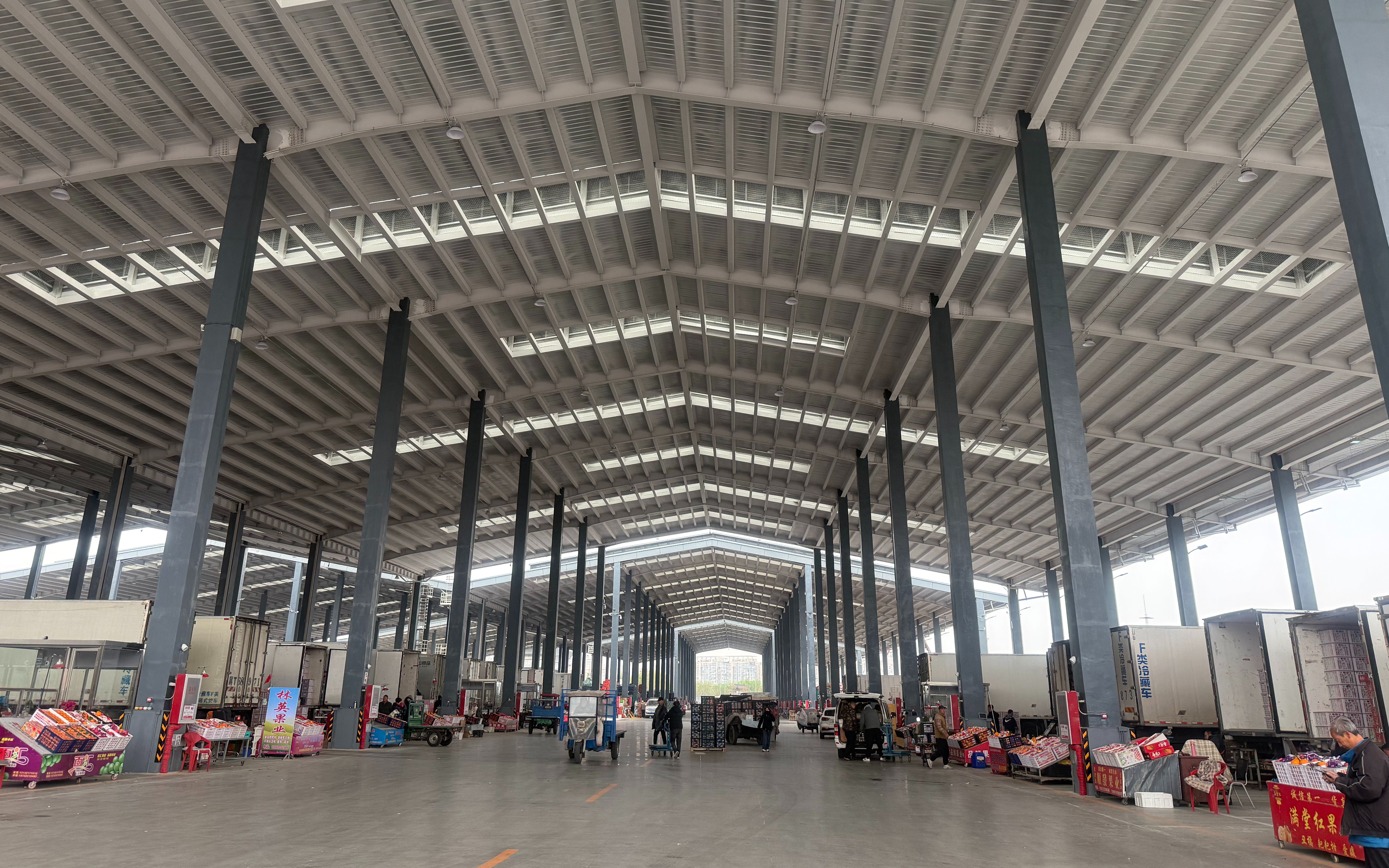 记者在现场看到,投入使用的水果交易大棚(A厅)一共有280个车位,现场交易井然有序,车辆装卸都在大棚内进行,这里主要经营西瓜、柑橘类等水果。“以前是露天交易,商户搭小棚子防雨挡风,现在进厅交易,再也不怕刮风下雨、下雪了。”张月琳介绍,A厅投用后,环境更加整洁,车辆停放整齐,交易量也在逐步上升。目前,果品B厅围挡已搭建完毕,近日将动工建设,预计今年年内投用;C厅预计明年“五一”前建成。届时,ABC三厅全部投用,所有水果商户均可实现进厅交易,环境整洁性将大幅提升。