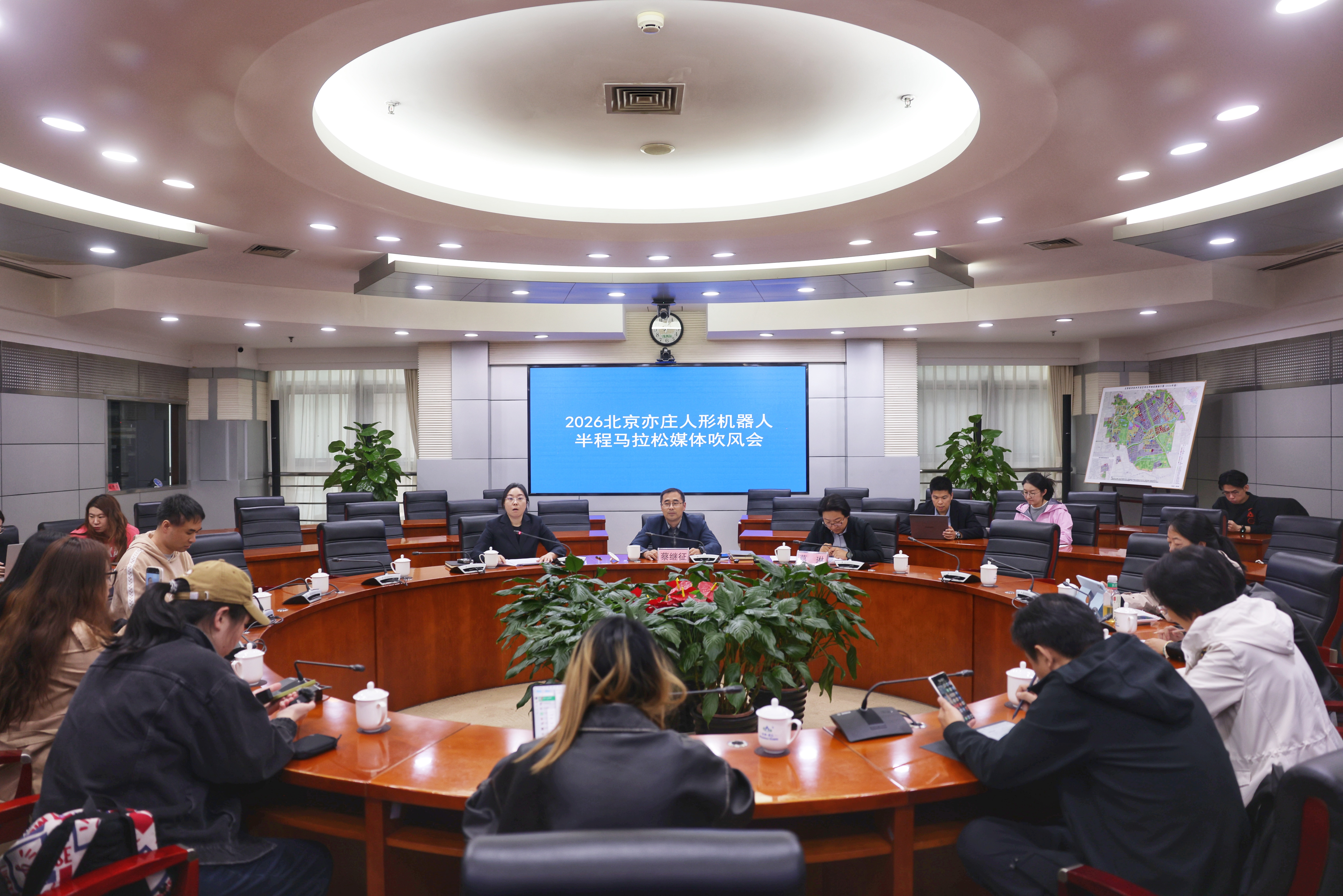 4月14日,2026北京亦庄人形机器人半程马拉松媒体吹风会举行。新京报记者 李木易 摄