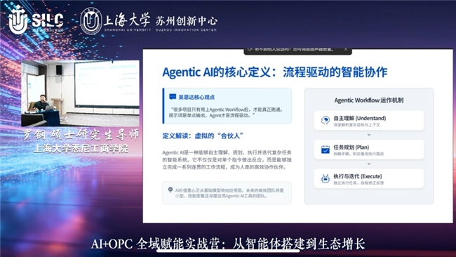 在当下科技飞速发展的时代,AI+OPC领域正成为推动企业创新与增长的关键力量。此次实战营紧扣时代脉搏,围绕2026年AI+OPC领域的核心议题精心布局课程内容。上海大学悉尼工商学院信息管理系硕士研究生导师罗钢深入浅出地为学员解读行业的最新趋势,让学员们清晰洞察未来发展方向;详细剖析政策红利,助力企业把握发展机遇;精准分析市场机遇,为企业在竞争激烈的市场中找准定位。面对Agentic AI智能体复杂的逻辑架构,罗钢导师抽丝剥茧,进行深度剖析。同时,结合丰富的OPC实际案例,将OPC全场景落地的技巧一一拆解,让抽象的理论变得鲜活易懂,使学员们能够快速掌握关键要点。