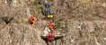 15时32分,由4名消防救援人员和3名蓝天救援队队员组成的救援小队,紧贴崖壁进行攀爬,成功抵达伤者身侧。伤者头部遭受重创,身上有多处开放性伤口,救援人员立即对伤口进行止血包扎,防止伤情进一步恶化。