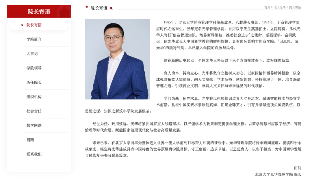 记者近日从北京大学光华管理学院获悉,著名经济学家、北京大学经济学院教授田轩,出任北京大学光华管理学院院长。