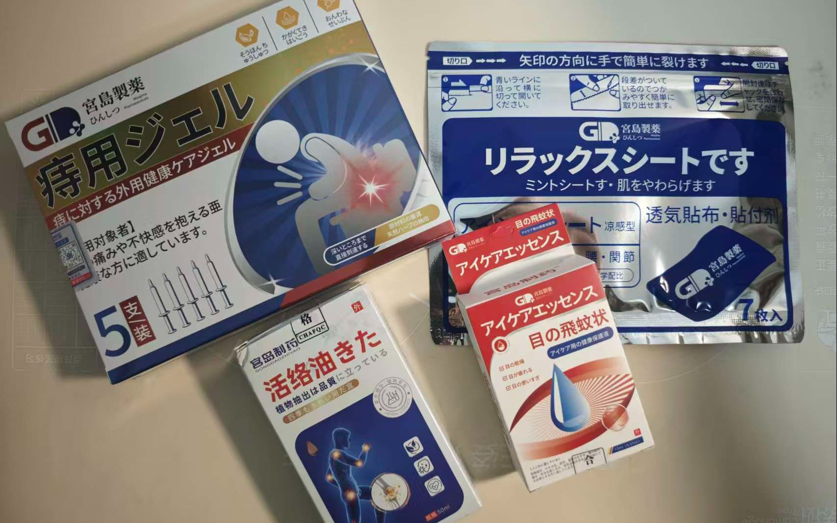 记者在消费者投诉的“宫岛制药护理XX自营旗舰店”看到,该店铺首页打出“日本药妆院线品牌”,店内销售多款“宫岛制药”商标产品,包括“日本久光膏药贴”“牙结石专用牙膏”“痔疮凝胶”“飞蚊症眼部护理保健液”“活络油”“肛周湿疹膏”等,相关产品包装上大量使用日文标签,但生产方均来自不同的国内企业。