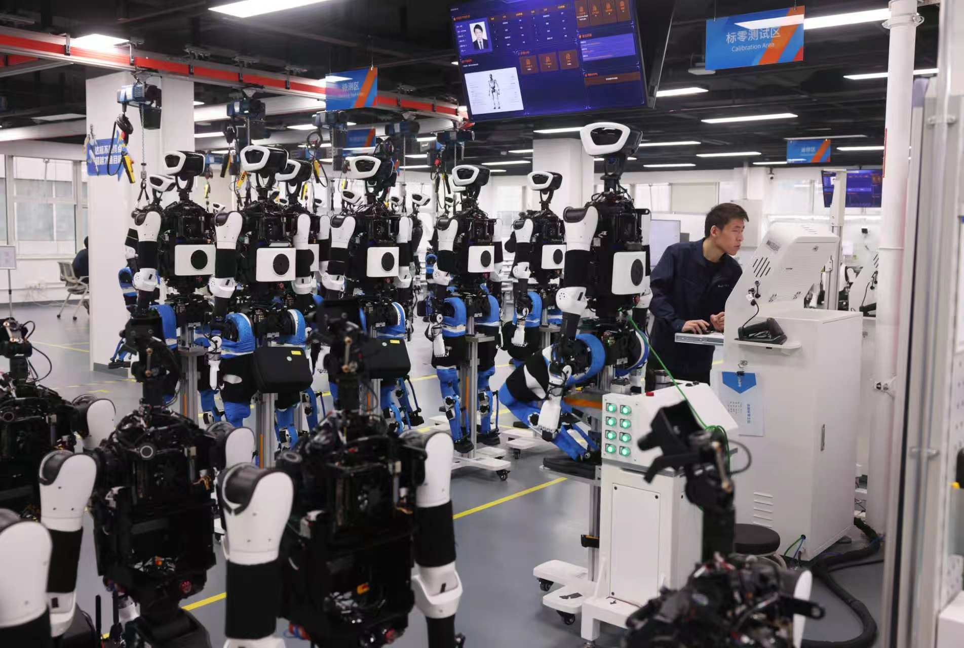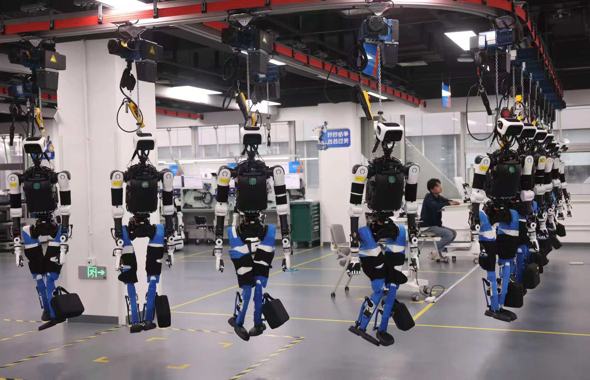 北京人形机器人创新中心中试平台是“天工”机器人的“大本营”,机器人的关节生产车间里整齐陈列着大小不一的圆柱形部件,它们是“天工”机器人全身最关键的部位——髋关节、膝关节、脚踝、手肘等。北京人形机器人创新中心中试验证平台关节生产负责人石海光介绍,“天工”系列目前拥有多款核心型号关节,可灵活适配不同身体部位,其中髋关节堪称机器人奔跑的“绝对核心”。