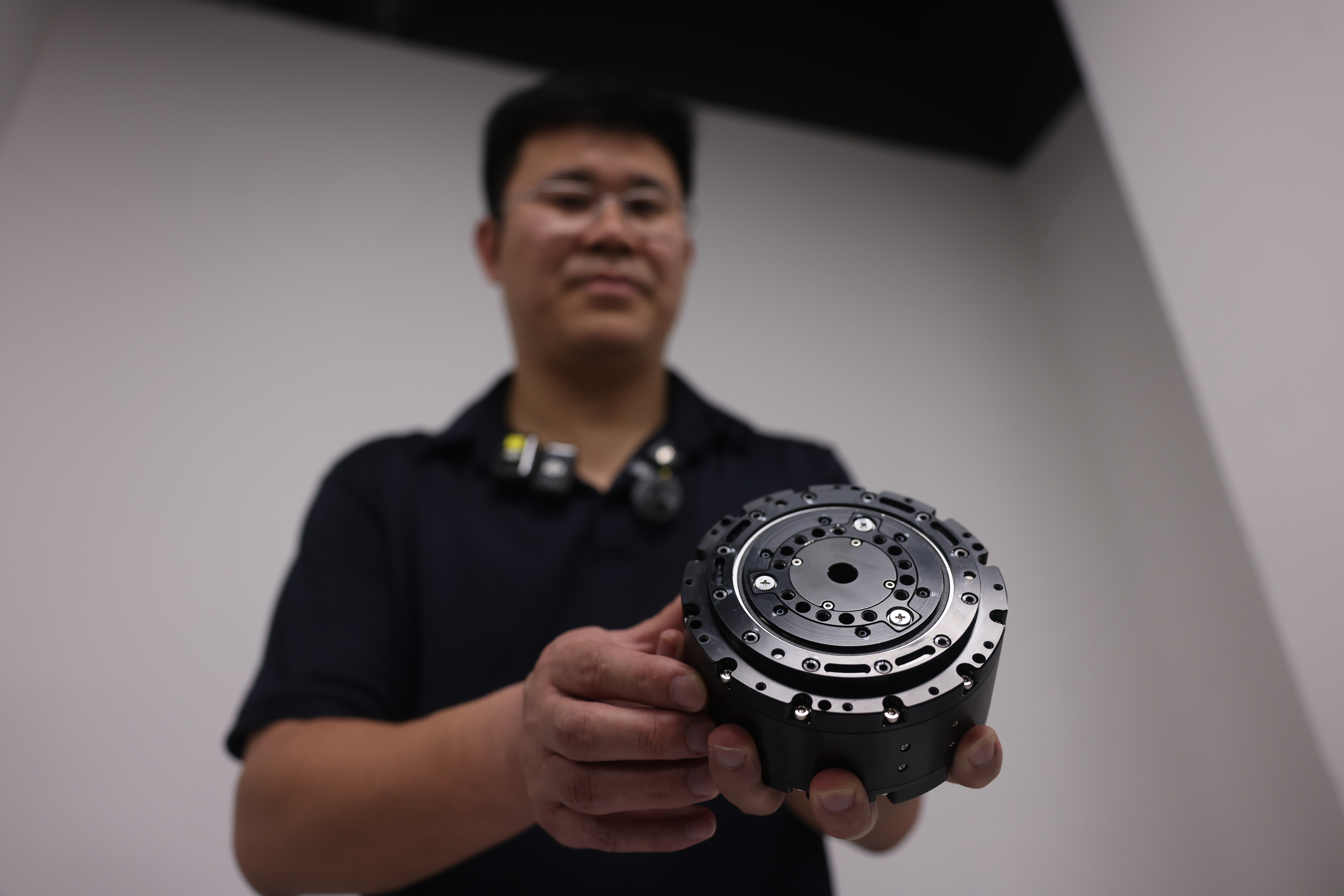 机器人双足奔跑,髋关节是发力的主要部位。石海光拿起一款机器人髋关节介绍说,针对21公里半马这种长奔跑场景,新一代的髋关节扭矩较上一代提升近一倍,兼具高扭矩、高稳定性的优势,能轻松承受高速奔跑时的强烈落地冲击,让机器人步幅更大、蹬地更有力。