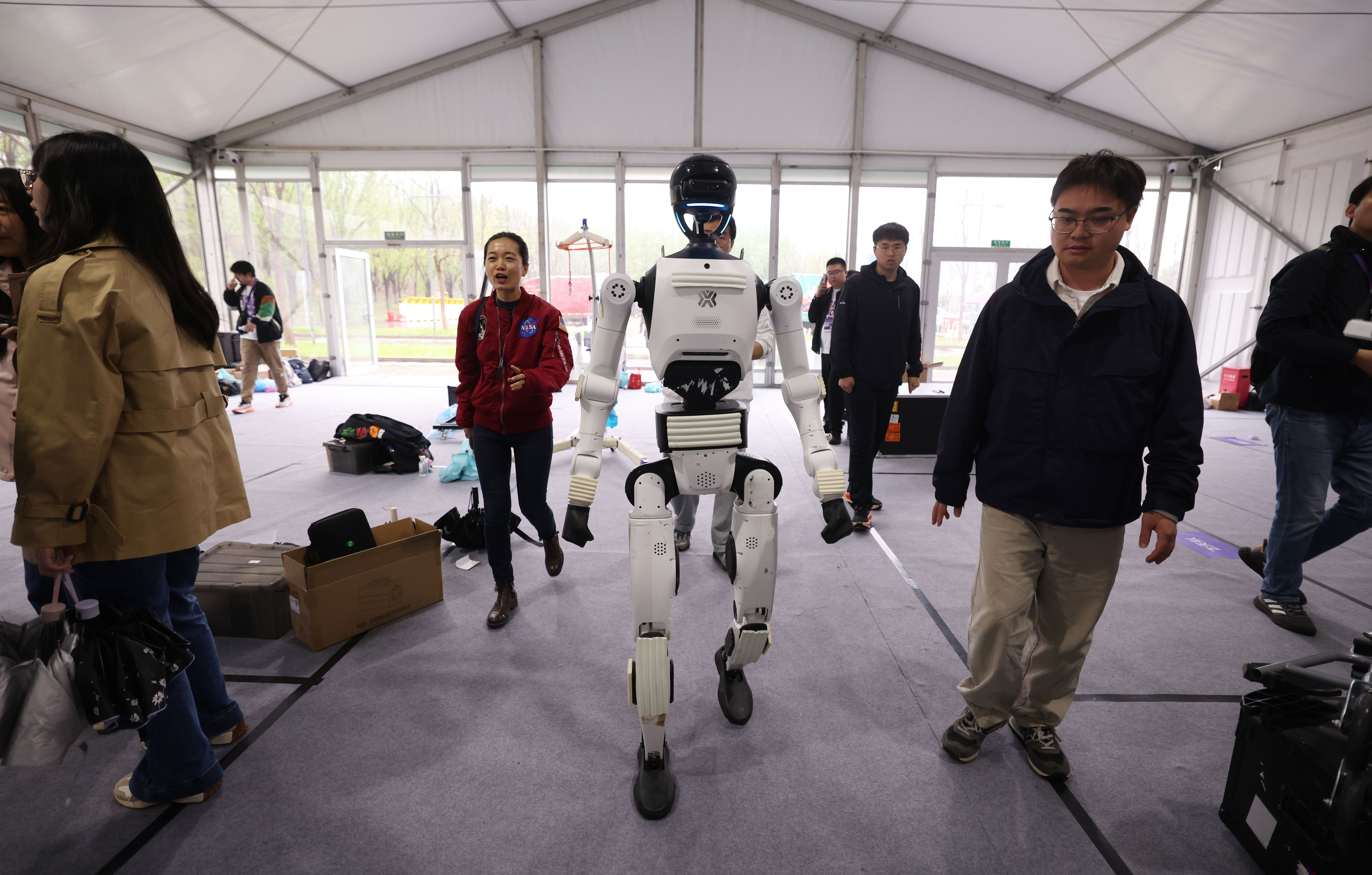 梁靓:人形机器人是多种交叉技术的集大成者,在机器人半马舞台上,向大家展示人形机器人的不同功能和风采。同时,今年我们还有机器人拉拉队、机器人美食服务官、机器人“关门兔”等等,这一系列创新旨在推动机器人迈向生产生活,并赋能千行百业。
