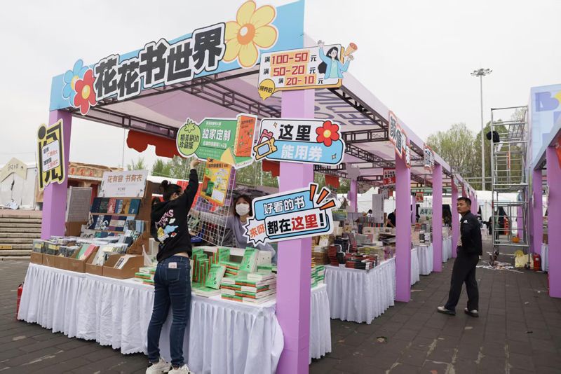 4月17日,工作人员搭建北京书市朝阳公园展场。2026北京书市将于4月18日至5月17日开启,以“书香京城 悦读春天”为主题,打造“4大集中展场+4类特色展场+N家实体书店联动展场”的全域阅读服务网络,北京市2000家实体书店联动参与。