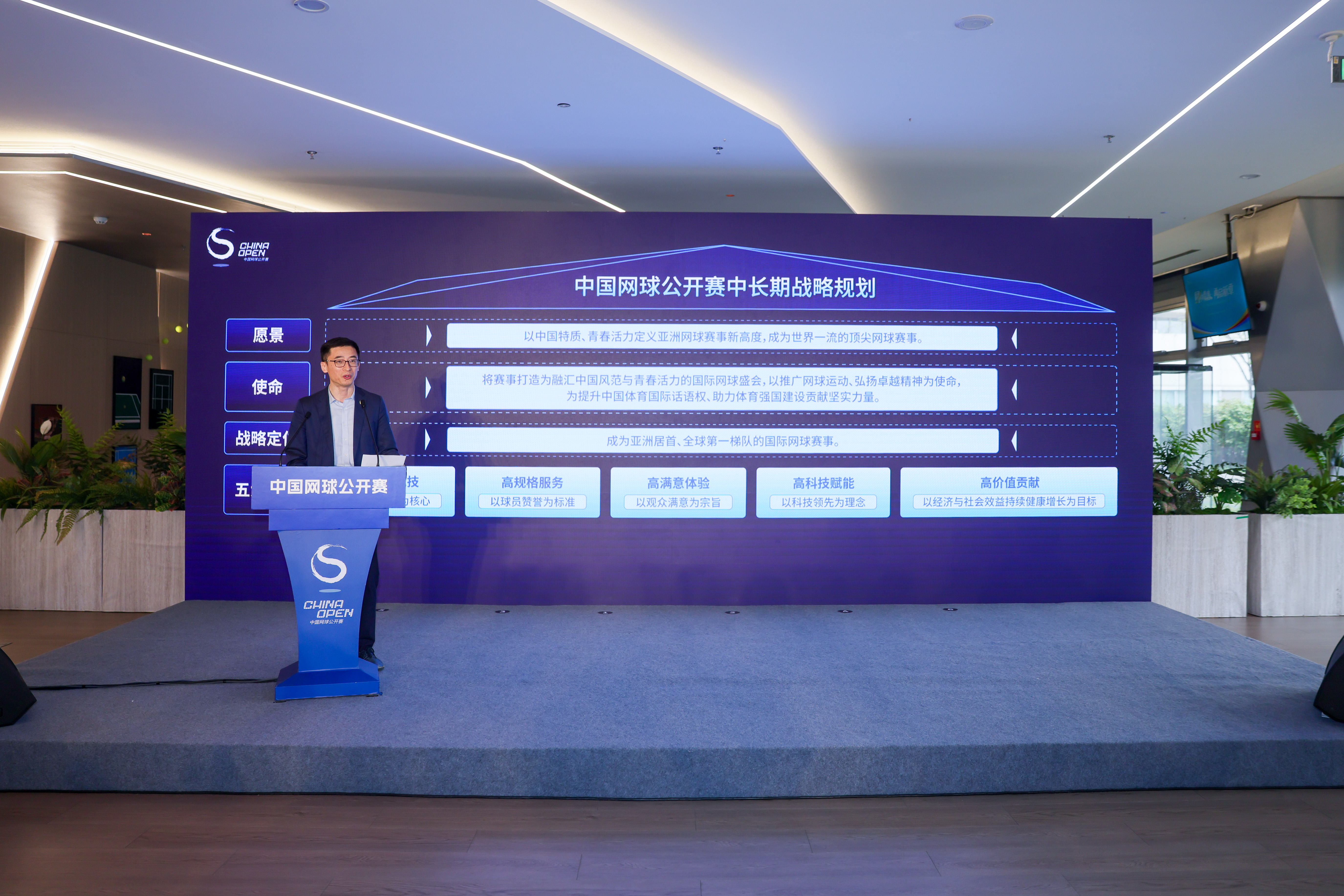 中网公司总经理李旭华表示,亚洲赛季竞争持续升温、国际赛程格局约束愈发凸显,全球顶级赛事在竞技品质与服务体验上的不断升级,正在加速重塑行业格局。为此,中网主动对标世界一流赛事,首次提出以“五大战略支柱”为核心的发展框架——高水平竞技、高规格服务、高满意体验、高科技赋能、高价值贡献,并据此明确未来五年至十年的发展路径。