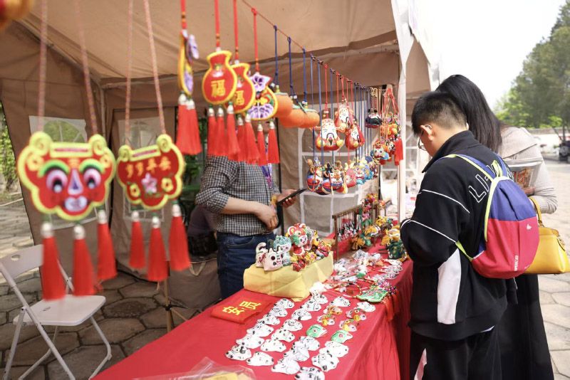 非遗文化体验区,游客挑选工艺品。