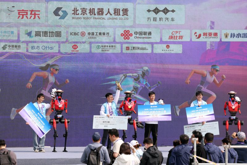 齐天大圣队、雷霆闪电队、星火燎原队分别夺得冠军、亚军、季军,净用时分别为50分26秒、50分56秒、53分01秒,均为自主导航方式参赛,比赛成绩均打破人类半马世界纪录。