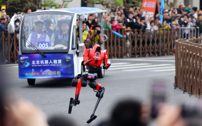 机器人和人类一起跑步。主办方供图