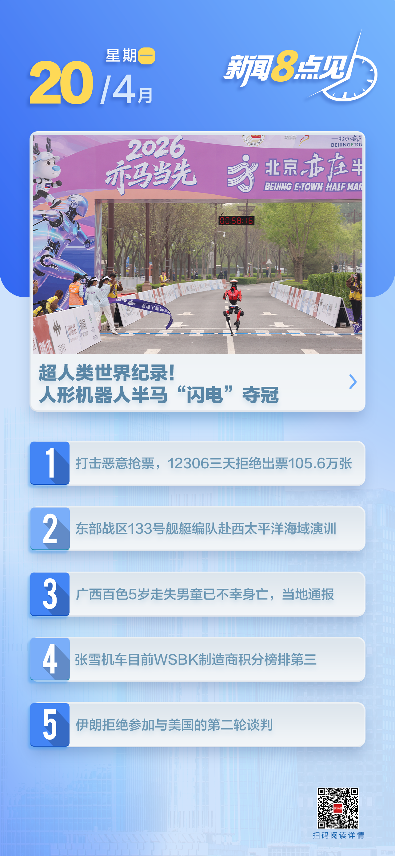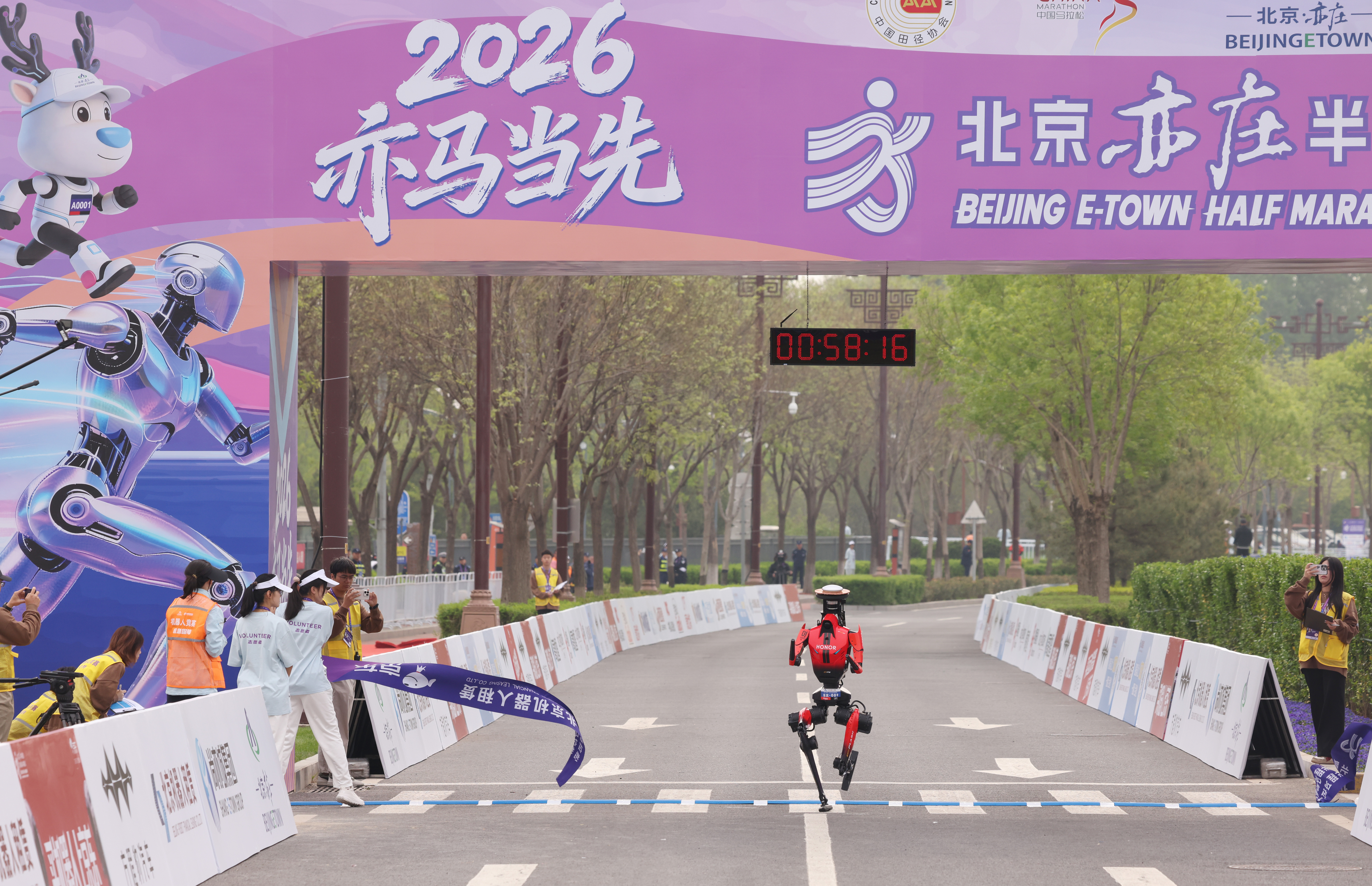 4月19日,在全球首个人形机器人马拉松品牌赛事——2026北京亦庄人形机器人半程马拉松赛场上,齐天大圣队的“闪电”机器人凭借50分26秒(净用时)的成绩获得冠军。这一成绩大幅超越了人类半马世界纪录(57分20秒),标志着人形机器人长距离奔跑能力实现里程碑式突破。(新京报)阅读全文>>>