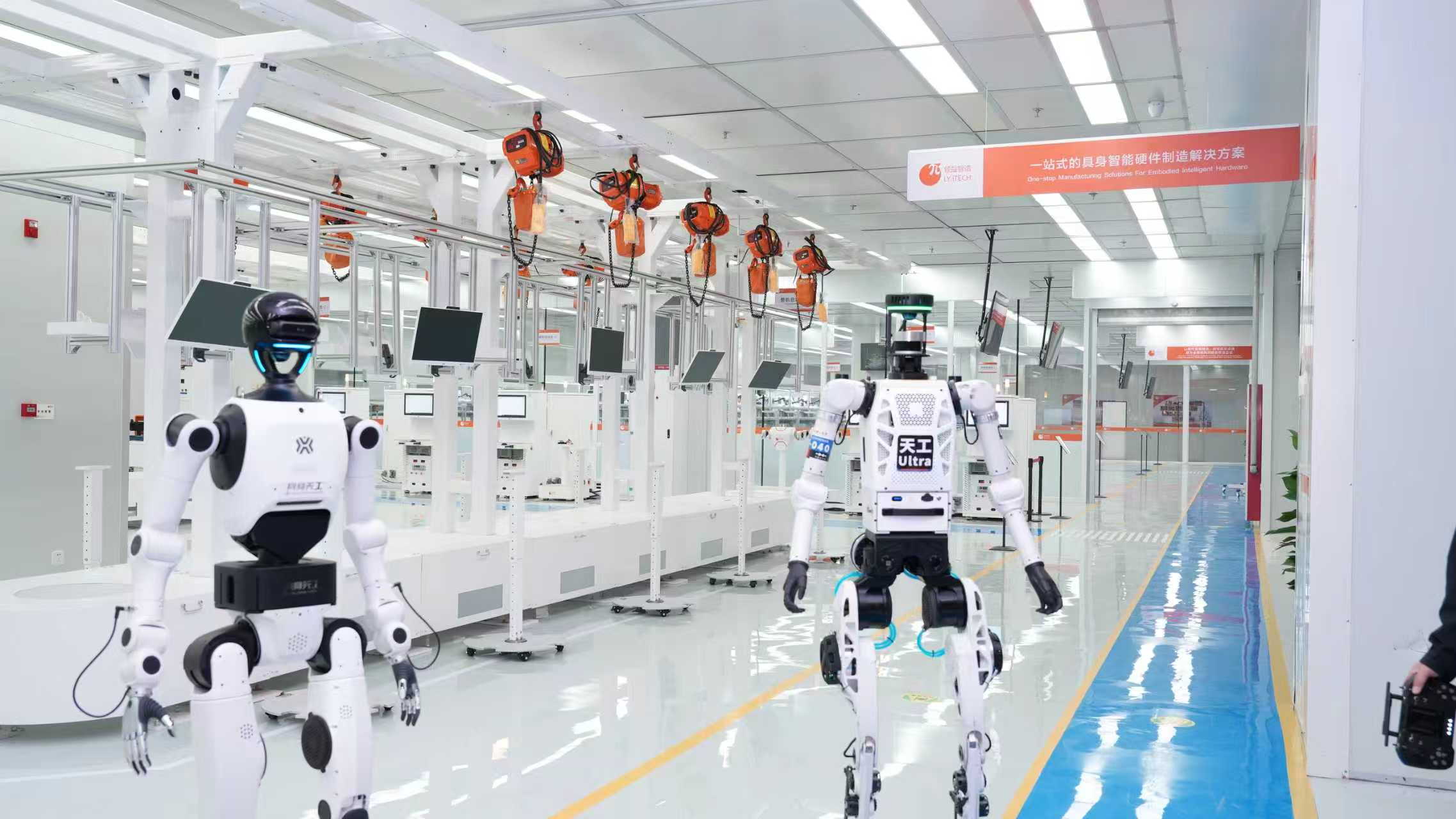 领益智造北京具身智能超级工厂打造了从核心零部件、关节模组、整机组装到整机测试的全链条一站式智造解决方案。该工厂从今年2月9日启动到首批机器人下线,仅用2个月攻坚、13天冲刺,便完成产线搭建、调试与装修,为具身智能产业从“技术突破”迈向“规模化商用”提供基础。