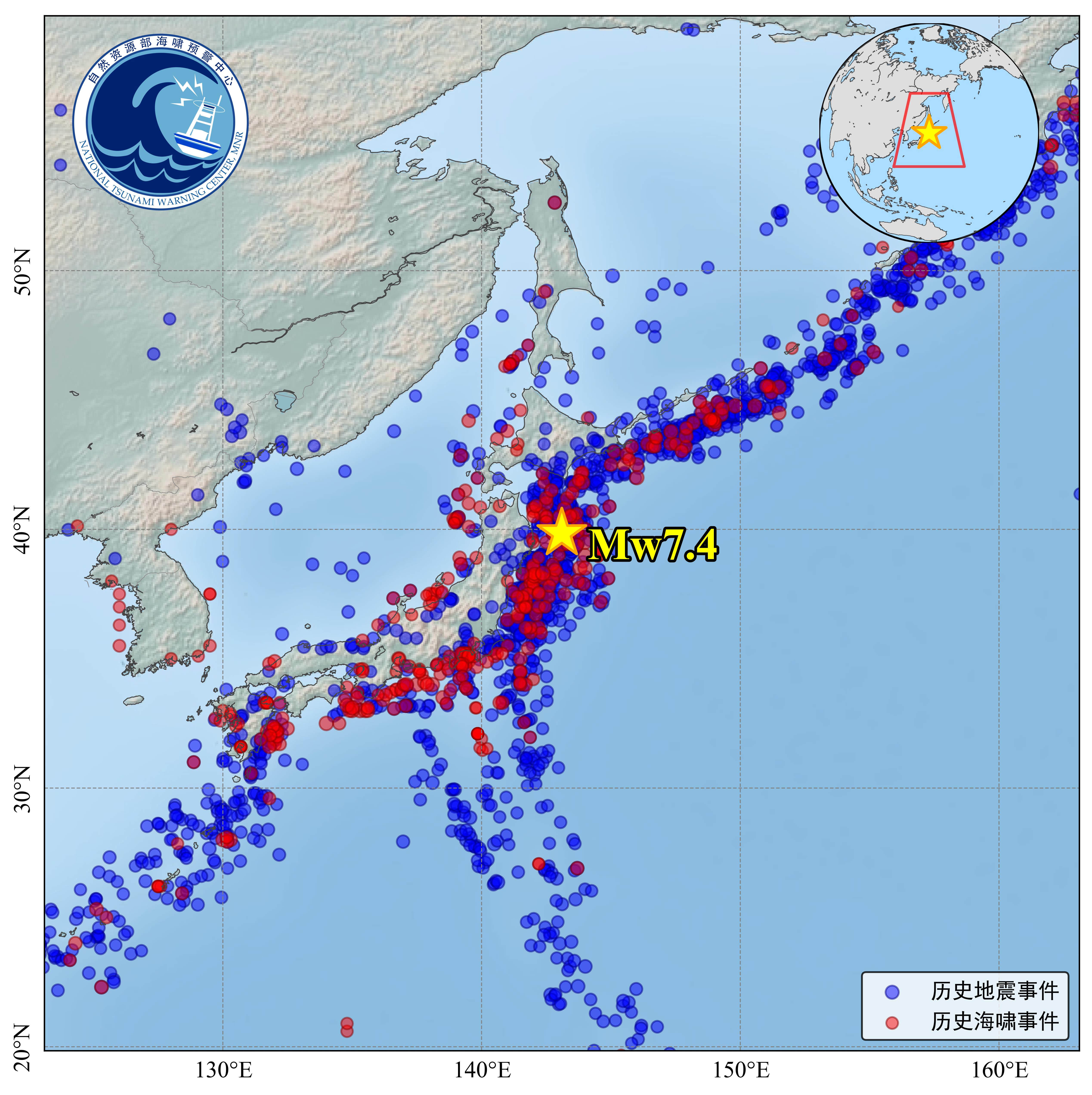 历史地震资料显示,过去100年间在震源周边250千米范围内已发生36次7.0级及以上地震。值得关注的是,本次震中位于2011年3月11日日本东北9.1级大地震北侧192公里处。全球历史海啸灾害数据库显示,历史上该区域曾发生过145次海啸事件,其中影响最大的是2011年9.1级地震引发的海啸灾害,最大海啸爬高38.9米。