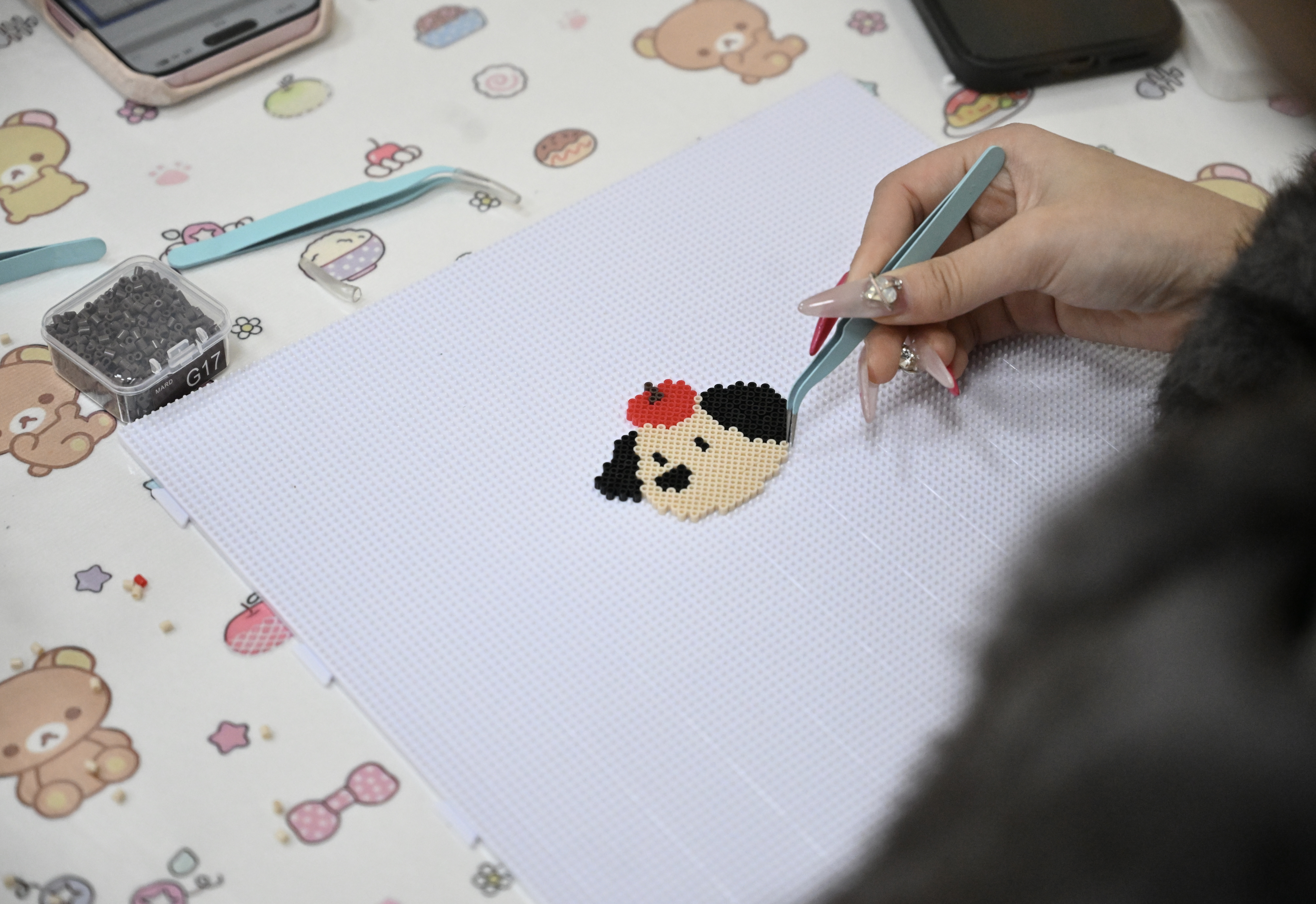 安徽省阜阳市一家手作馆,一位年轻人在“拼豆”。图/IC photo