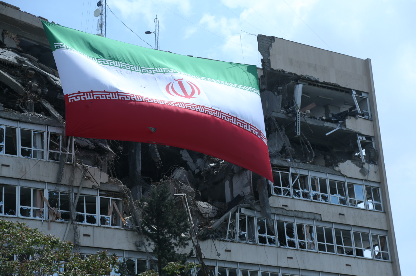 ▲4月20日,在伊朗首都德黑兰,伊朗国旗悬挂在遭美以袭击被严重损毁的建筑上。图/新华社