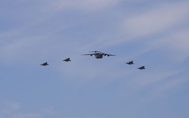 赴韩接迎第十三批在韩志愿军烈士遗骸的运-20B专机进入我国领空后,4架歼-20战机护航伴飞。5机组成“箭”形编队列阵长空,以最高礼仪告慰先烈。山河锦绣,国泰民安,大国重器护送英烈回家!