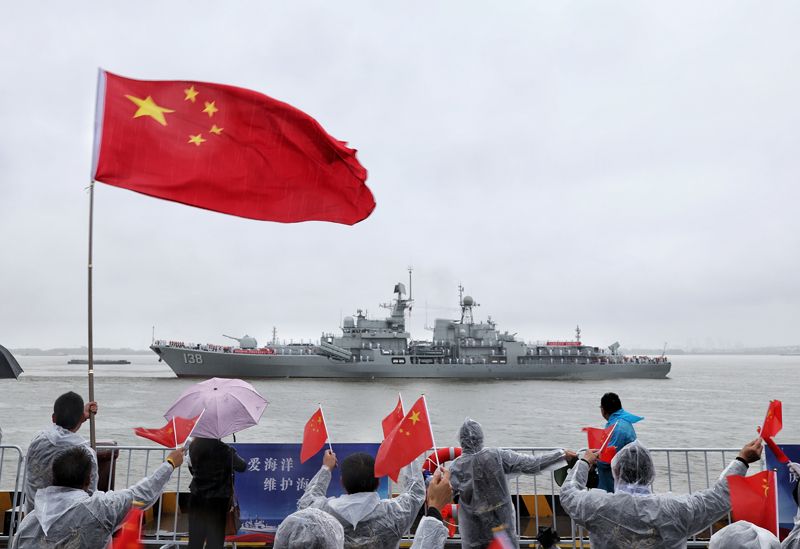 在泰州舰导弹发射架下,参加迎接仪式的市民代表指着庞大的舰体告诉孩子什么是“国之重器”。“能亲手摸到咱们自己的战舰,心里特别踏实,也特别自豪!”一位市民的感慨道出了众人的心声。