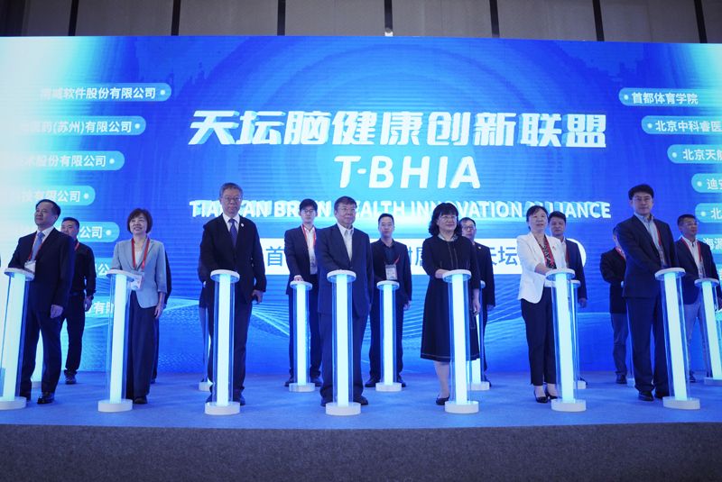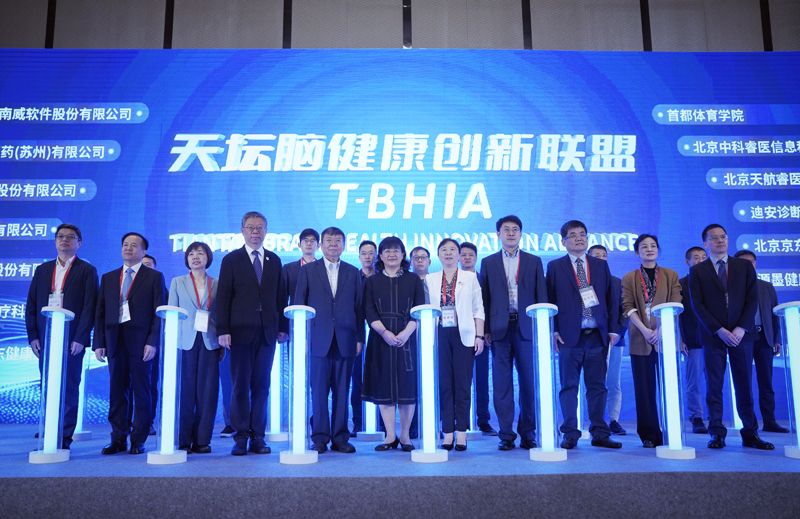 4月25日,由首都医科大学附属北京天坛医院发起,联合多家科研机构、高校和企业成立的“天坛脑健康创新联盟”正式成立。图为领导和嘉宾参加联盟启动仪式。