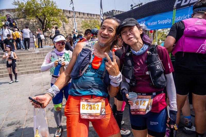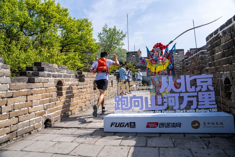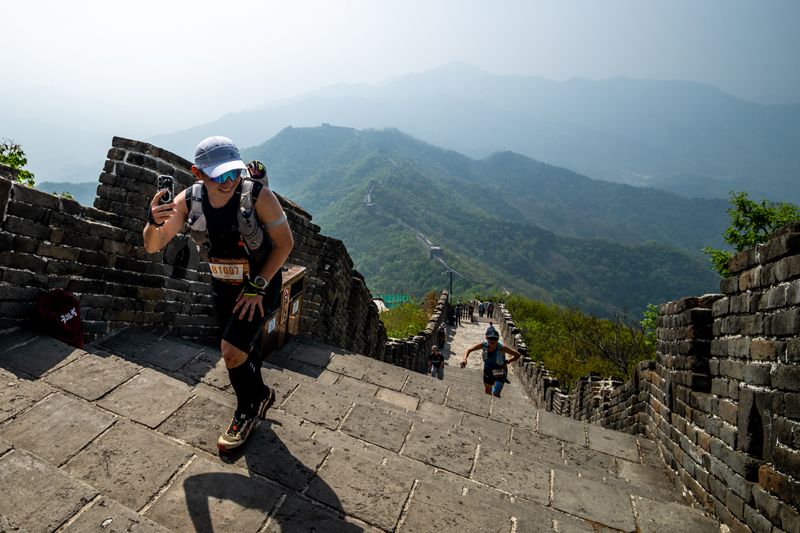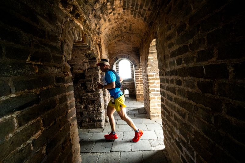 跑者跨越长城敌楼。