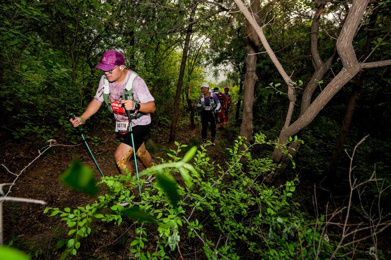 跑者在山野林间穿行。