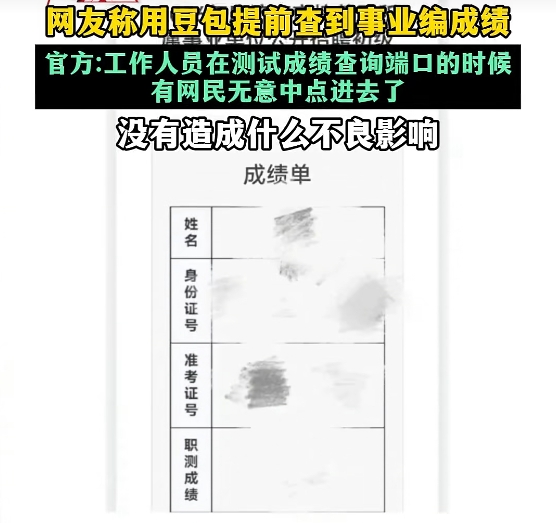 但据相关工作人员解释,“因为今天要发布笔试成绩,所以昨晚工作人员在测试成绩查询端口的时候,有网民无意中点进去了”。也就是说,这其实是互联网上常见的一件事,成绩已经在服务器上,查询端口已经能访问,只是官方还没有正式公告。